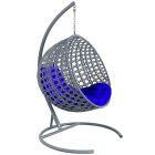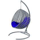 МГКШЛР-13-10 Подвесное кресло КРУГ ЛЮКС с ротангом серое, синяя подушка