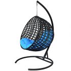 МГКШЛР-14-03 Подвесное кресло КРУГ ЛЮКС с ротангом чёрное, голубая подушка