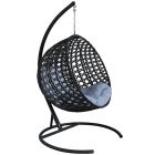 МГКШЛР-14-09 Подвесное кресло КРУГ ЛЮКС с ротангом чёрное, серая подушка