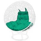 МГКШПР-11-04 Кресло КРУГ на подставке с ротангом белое, зелёная подушка