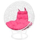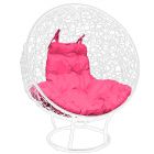 МГКШПР-11-08 Кресло КРУГ на подставке с ротангом белое, розовая подушка