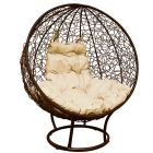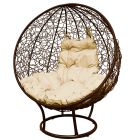 МГКШПР-12-01 Кресло КРУГ на подставке с ротангом коричневое, бежевая подушка