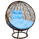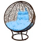 МГКШПР-12-03 Кресло КРУГ на подставке с ротангом коричневое, голубая подушка