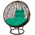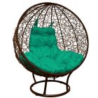 МГКШПР-12-04 Кресло КРУГ на подставке с ротангом коричневое, зелёная подушка