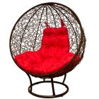 МГКШПР-12-06 Кресло КРУГ на подставке с ротангом коричневое, красная подушка