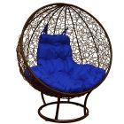МГКШПР-12-10 Кресло КРУГ на подставке с ротангом коричневое, синяя подушка