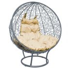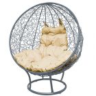 МГКШПР-13-01 Кресло КРУГ на подставке с ротангом серое, бежевая подушка