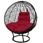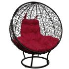МГКШПР-14-02 Кресло КРУГ на подставке с ротангом чёрное, бордовая подушка