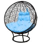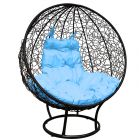 МГКШПР-14-03 Кресло КРУГ на подставке с ротангом чёрное, голубая подушка