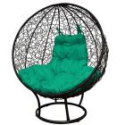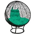 МГКШПР-14-04 Кресло КРУГ на подставке с ротангом чёрное, зелёная подушка