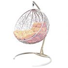 МГКШР-11-01 Подвесное кресло КРУГ с ротангом белое, бежевая подушка
