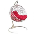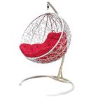 МГКШР-11-06 Подвесное кресло КРУГ с ротангом белое, красная подушка