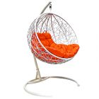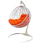 МГКШР-11-07 Подвесное кресло КРУГ с ротангом белое, оранжевая подушка