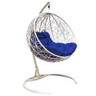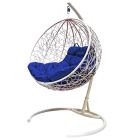 МГКШР-11-10 Подвесное кресло КРУГ с ротангом белое, синяя подушка