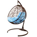 МГКШР-12-03 Подвесное кресло КРУГ с ротангом коричневое, голубая подушка