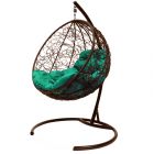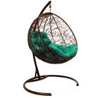 МГКШР-12-04 Подвесное кресло КРУГ с ротангом коричневое, зелёная подушка
