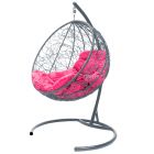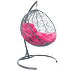МГКШР-13-08 Подвесное кресло КРУГ с ротангом серое, розовая подушка