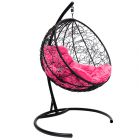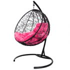 МГКШР-14-08 Подвесное кресло КРУГ с ротангом чёрное, розовая подушка