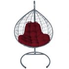 МГКИР-13-02 Подвесное кресло XL с ротангом серое, бордовая подушка
