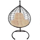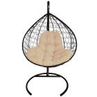 МГКИР-14-01 Подвесное кресло XL с ротангом чёрное, бежевая подушка