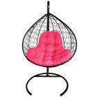 МГКИР-14-08 Подвесное кресло XL с ротангом чёрное, розовая подушка