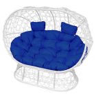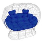 МГОДЛ-11-10 Диван ЛЕЖЕБОКА на подставке с ротангом белый, синяя подушка
