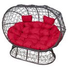 МГОДЛ-12-06 Диван ЛЕЖЕБОКА на подставке с ротангом коричневый, красная подушка