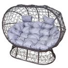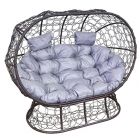 МГОДЛ-12-09 Диван ЛЕЖЕБОКА на подставке с ротангом коричневый, серая подушка