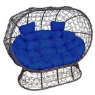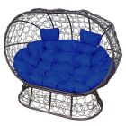 МГОДЛ-12-10 Диван ЛЕЖЕБОКА на подставке с ротангом коричневый, синяя подушка