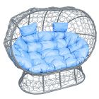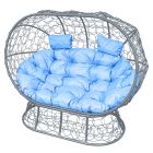 МГОДЛ-13-03 Диван ЛЕЖЕБОКА на подставке с ротангом серый, голубая подушка