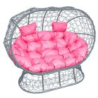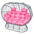 МГОДЛ-13-08 Диван ЛЕЖЕБОКА на подставке с ротангом серый, розовая подушка