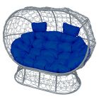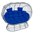 МГОДЛ-13-10 Диван ЛЕЖЕБОКА на подставке с ротангом серый, синяя подушка