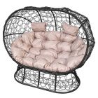 МГОДЛ-14-01 Диван ЛЕЖЕБОКА на подставке с ротангом чёрный, бежевая подушка