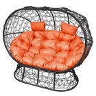 МГОДЛ-14-07 Диван ЛЕЖЕБОКА на подставке с ротангом чёрный, оранжевая подушка