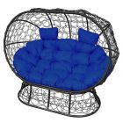 МГОДЛ-14-10 Диван ЛЕЖЕБОКА на подставке с ротангом чёрный, синяя подушка