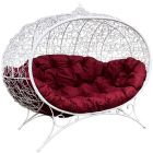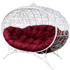 МГОДУ-11-02 Диван УЛЕЙ на ножках с ротангом белый, бордовая подушка