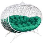 МГОДУ-11-04 Диван УЛЕЙ на ножках с ротангом белый, зелёная подушка