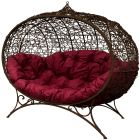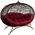 МГОДУ-12-02 Диван УЛЕЙ на ножках с ротангом коричневый, бордовая подушка
