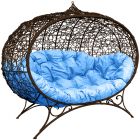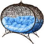 МГОДУ-12-03 Диван УЛЕЙ на ножках с ротангом коричневый, голубая подушка