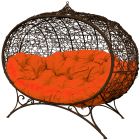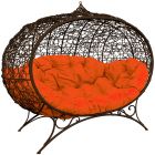 МГОДУ-12-07 Диван УЛЕЙ на ножках с ротангом коричневый, оранжевая подушка