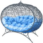 МГОДУ-13-03 Диван УЛЕЙ на ножках с ротангом серый, голубая подушка