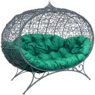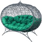 МГОДУ-13-04 Диван УЛЕЙ на ножках с ротангом серый, зелёная подушка