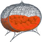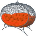 МГОДУ-13-07 Диван УЛЕЙ на ножках с ротангом серый, оранжевая подушка