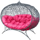 МГОДУ-13-08 Диван УЛЕЙ на ножках с ротангом серый, розовая подушка