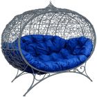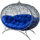 МГОДУ-13-10 Диван УЛЕЙ на ножках с ротангом серый, синяя подушка