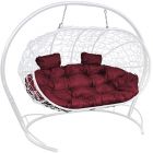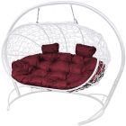 МГПДЛ-11-02 Подвесной диван ЛЕЖЕБОКА с ротангом белый, бордовая подушка