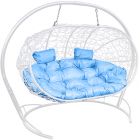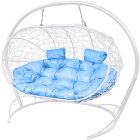 МГПДЛ-11-03 Подвесной диван ЛЕЖЕБОКА с ротангом белый, голубая подушка