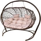 МГПДЛ-12-01 Подвесной диван ЛЕЖЕБОКА с ротангом коричневый, бежевая подушка