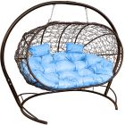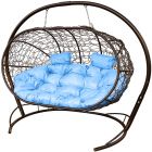 МГПДЛ-12-03 Подвесной диван ЛЕЖЕБОКА с ротангом коричневый, голубая подушка