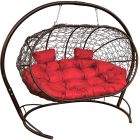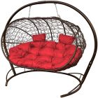 МГПДЛ-12-06 Подвесной диван ЛЕЖЕБОКА с ротангом коричневый, красная подушка